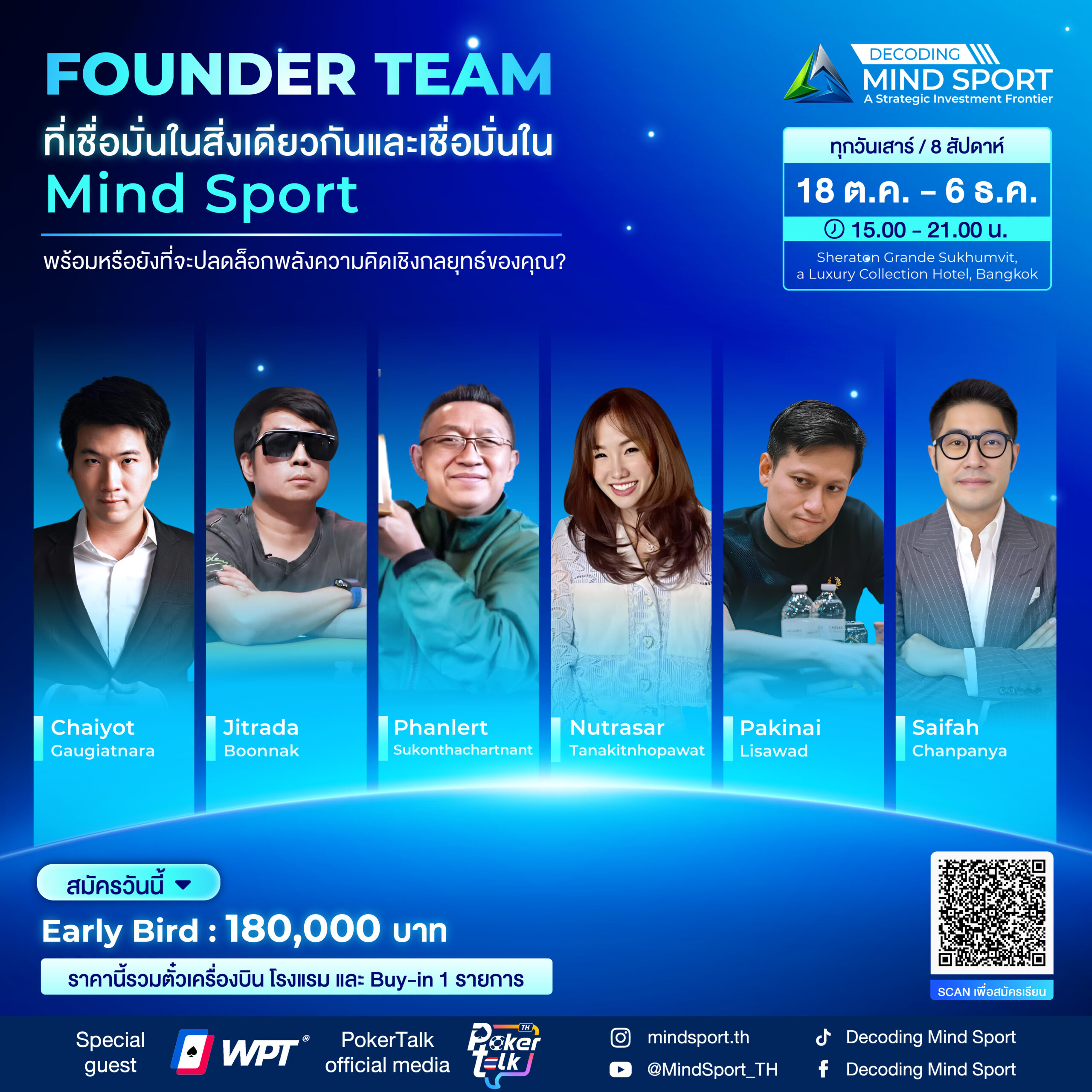 พลังแห่งความคิดเริ่มต้นที่นี่! 6 Founder ผนึกกำลัง ปลดล็อก Mind Sport Frontier ที่รวมทั้ง กลยุทธ์ โอกาส และคอนเนคชันระดับโลก พร้อมหรือยังที่จะเป็นส่วนหนึ่งของยุคใหม่? ร่วมสร้างเครือข่ายกับตัวจริงในวงการ mind sport